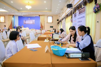 บรรยากาศการรับสมัครนักเรียน ระดับชั้นมัธยมศึกษาปีที่ 1 และชั้นมัธยมศึกษาปีที่ 4 ประเภทห้องเรียนพิเศษ ปีการศึกษา 2562 ของโรงเรียนสงวนหญิง จังหวัดสุพรรณบุรี ระหว่างวันที่ 23 - 27 กุมภาพันธ์ 2562 ณ หอประชุมอาคารอเนกประสงค์