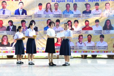 วันพฤหัสบดีที่ 15 พฤศจิกายน 2561 ดร.สมใจ สืบวัฒนพงษกุล รองผู้อำนวยการฝ่ายบริหารวิชาการ โรงเรียนสงวนหญิง จังหวัดสุพรรณบุรี มอบเกียรติบัตรรางวัลให้กับนักเรียนทุกห้องเรียน ที่ได้รับรางวัลการประกวดสวดมนต์หมู่ทำนองสรภัญญะ
