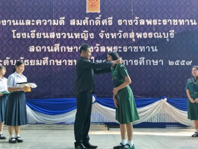 วันพฤหัสบดีที่ 11 มกราคม 2561 โรงเรียนสงวนหญิง จังหวัดสุพรรณบุรี นำโดย ดร.นิติกรณ์ ฉันท์วงศ์ชนะ ผู้อำนวยการโรงเรียนสงวนหญิง จัดงานฉลองเนื่องในโอกาสได้รับรางวัล 'สถานศึกษารางวัลพระราชทาน ' ระดับมัธยมศึกษา ประจำปีการศึกษา 2559 โดยนำขบวนเกียรติยศ รถอัญเชิญตราสัญลักษณ์โรงเรียน รถอัญเชิญรางวัลพระราชทาน ขบวนพาเหรด ประกอบด้วยวงโยธวาทิต คณะผู้บริหาร ครู และนักเรียน จากโรงเรียนเทศบาล 2 วัดปราสาททอง ถึงโรงเรียนสงวนหญิง พร้อมทำพิธีฉลองอย่างเต็มภาคภูมิและสง่างาม 'กราบขอบพระคุณผู้ก่อตั้งโรงเรียน ท่านผู้บริหารทุกรุ่น ครูบาอาจารย์ ศิษย์เก่า และผู้มีส่วนเกี่ยวข้องทุกฝ่าย ที่เป็นต้นแบบแห่งความดีงาม สั่งสมประสบการณ์ เป็นแนวทางให้กับพวกเราชนรุ่นหลังได้หล่อหลอมคุณความดี สืบทอดเจตนารมย์เพื่อพัฒนาโรงเรียน นักเรียนให้เป็นที่ประจักษ์ เจริญงอกงามในวงการศึกษาตลอดไป' 'สงวนหญิงยิ่งชีวิตสถิตหล้า สงวนเกียรติยิ่งชีวาค่าควรสงวน' อยู่สงวนหญิง รักสงวนหญิงตลอดไปค่ะ