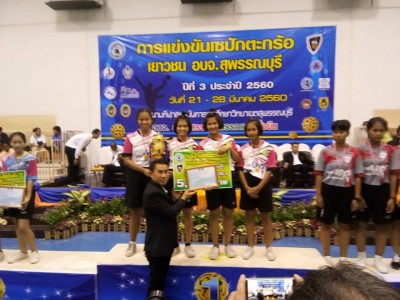 วันที่ 21 - 28 มีนาคม 2560 'อบจ.สร้างสรรค์ สุพรรณบุรียั่งยืน' จัดการแข่งขันเซปักตะกร้อ เยาวชน อบจ.สุพรรณบุรี ปีที่ 3 ประจำปี 2560 ณ สนามกีฬาสถาบันการพลศึกษา วิทยาเขตสุพรรณบุรี ขอแสดงความยินดีกับลูกส.ญ. และ ผู้ฝึกซ้อมกับรางวัลชนะเลิศรุ่นอายุ 18 ปี แชมป์ 3 ปีซ้อน