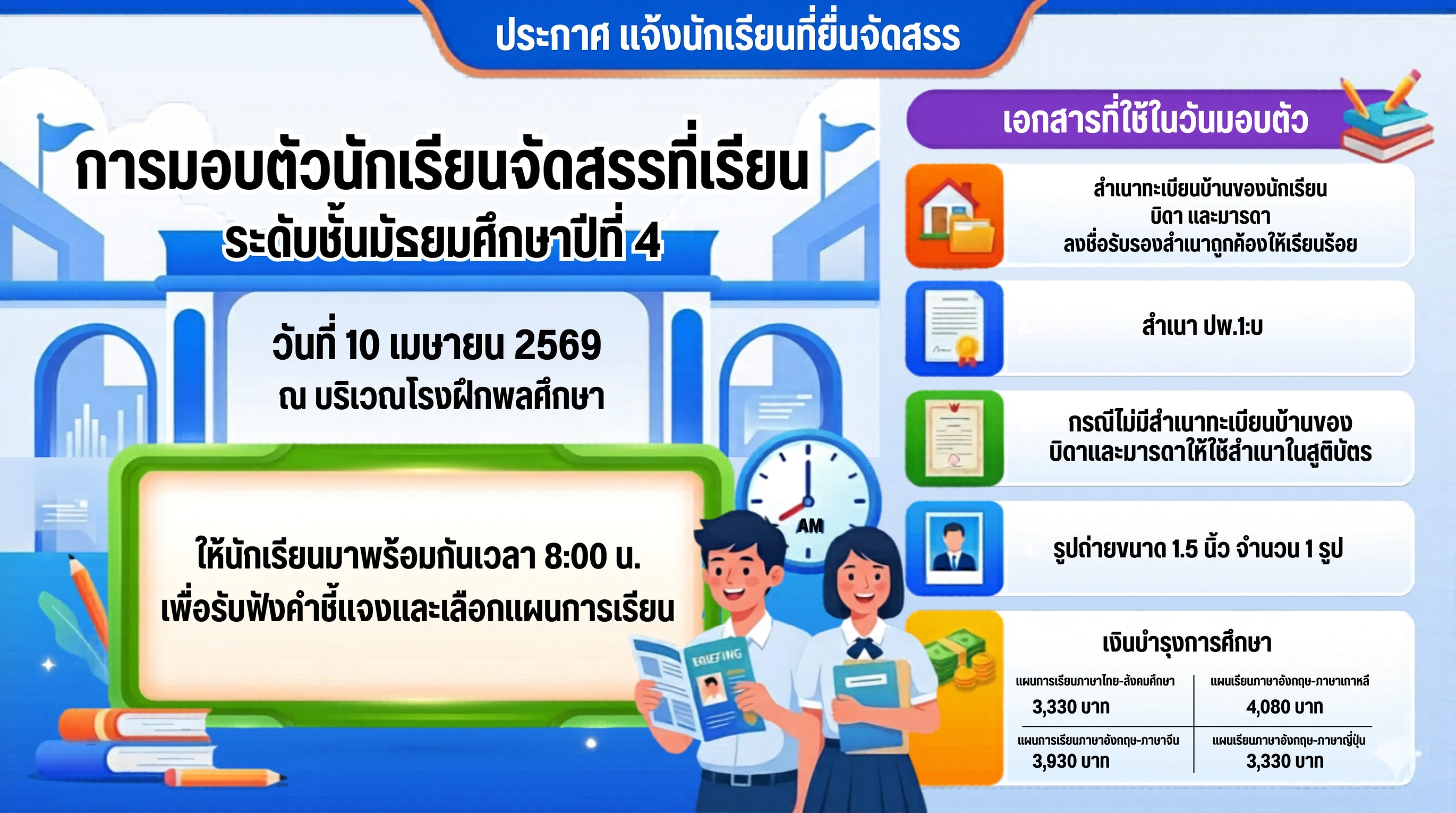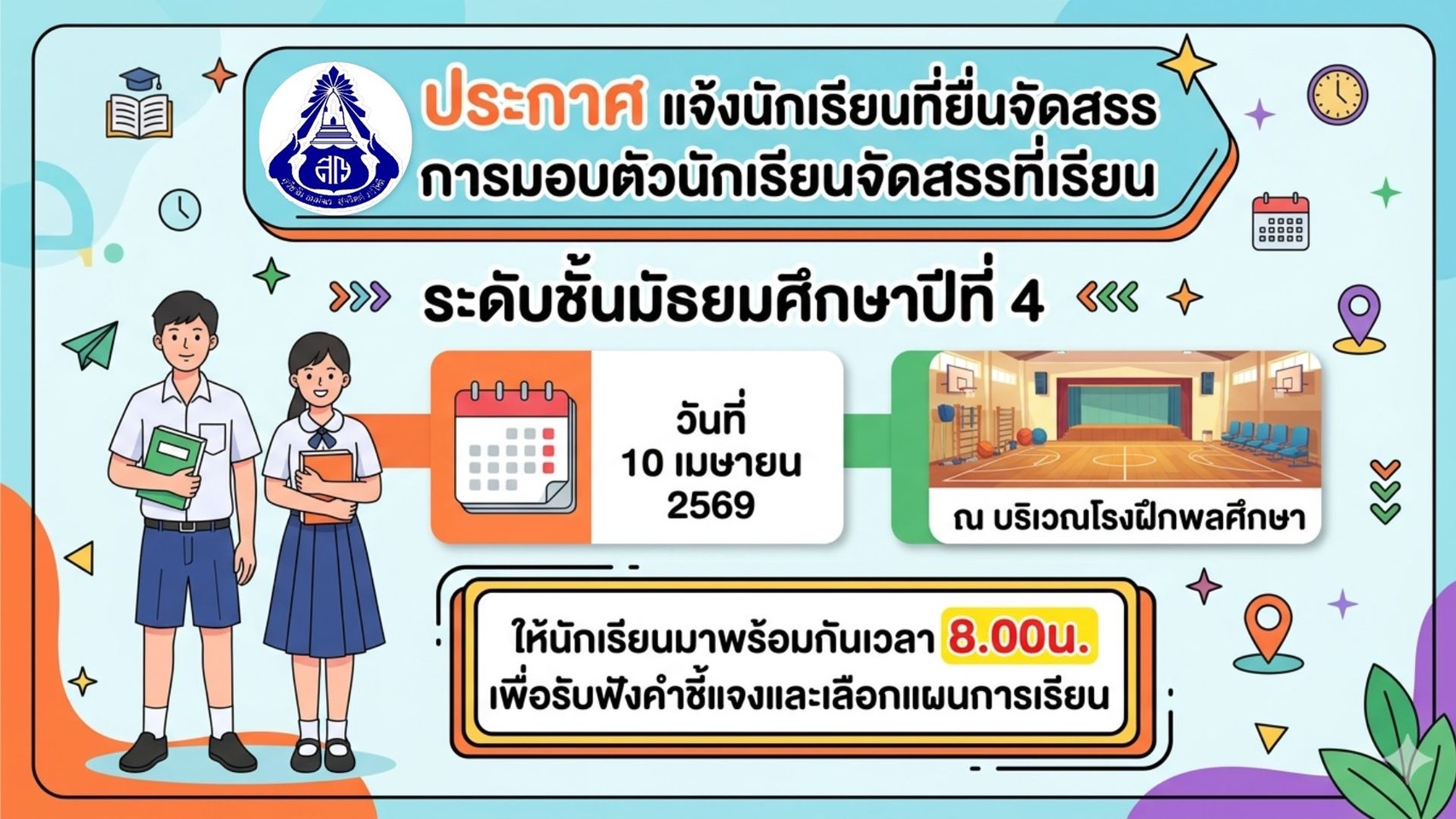 เรื่อง แจ้งผลการจัดสรรที่เรียนสำหรับนักเรียนที่แสดงความจำนงให้จัดหาที่เรียน ปีการศึกษา 2569