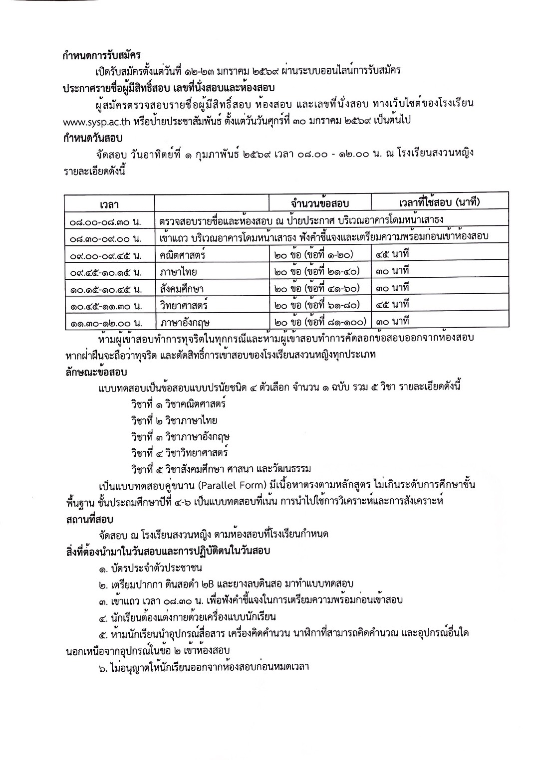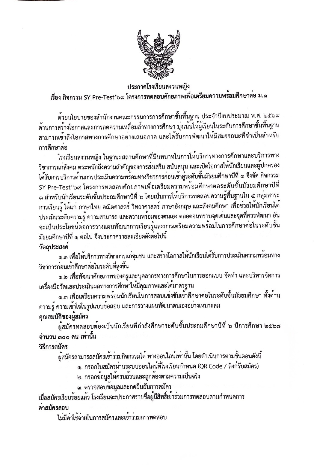 โครงการทดสอบศักยภาพเพื่อเตรียมศึกษาต่อ ม.1 SY Pre-Test'69