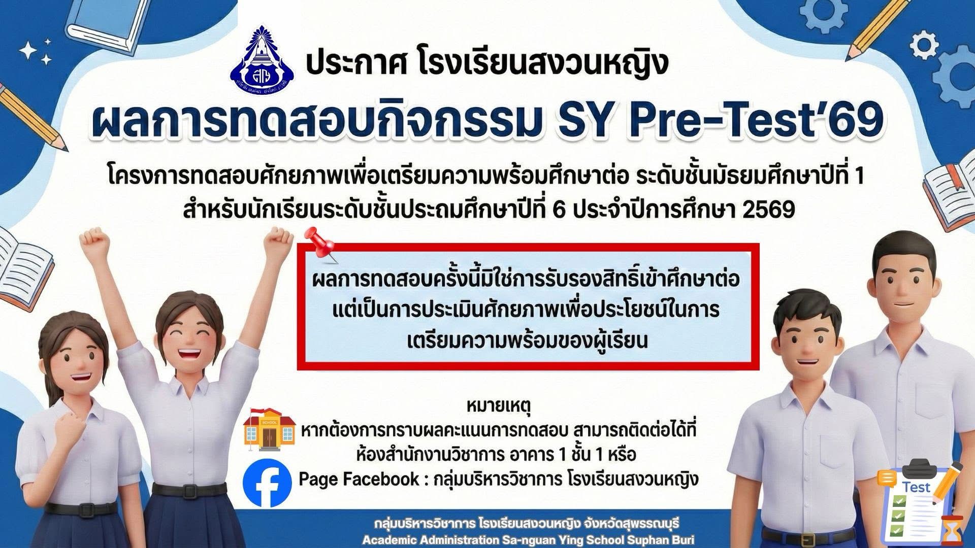 ประกาศโรงเรียนสงวนหญิง เรื่องผลการทดสอบกิจกรรม SY Pre-Test'69 ปีการศึกษา 2569