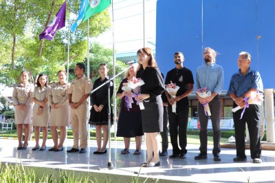 วันจันทร์ที่ 10 มิถุนายน 2562 ดร.นิติกรณ์ ฉันท์วงศ์ชนะ ผู้อำนวยการโรงเรียนสงวนหญิง กล่าวต้อนรับและมอบช่อดอกไม้เพื่อเป็นกำลังใจ กับคุณครูใหม่ทุกท่านที่เข้ามาปฏิบัติหน้าที่ ในรั้วน้ำเงินขาว ปีการศึกษา 2562