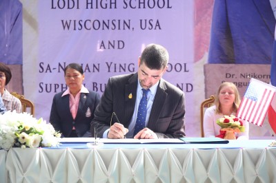 วันอังคารที่ 3 กรกฎาคม 2561 โรงเรียนสงวนหญิง จังหวัดสุพรรณบุรี นำโดย ผอ.ดร.นิติกรณ์ ฉันท์วงศ์ชนะ ร่วมพิธีลงนามความร่วมมือทางด้านการศึกษา MOU SIGNING LODI HIGH SCHOOL WISCONSIN, USA AND SA-NGUAN YING SCHOOL SUPHAN BURI, THAILAND