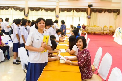 วันพฤหัสบดีที่ 5 เมษายน 2561 บรรยากาศการประกาศผลสอบและรายงานตัว นักเรียนชั้นมัธยมศึกษาปีที่ 4 ปีการศึกษา 2561 ประเภทนักเรียนห้องเรียนปกติ ของโรงเรียนสงวนหญิง จังหวัดสุพรรณบุรี