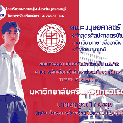 ขอแสดงความยินดีกับนักเรียนที่ได้รับรางวัลในการแข่งขัน 'การอ่านทำนองเสนาะ แสงประทีปส่องฉันทลักษณ์ไทย' จัดโดยสถาบันไทยปัญญ์สุข