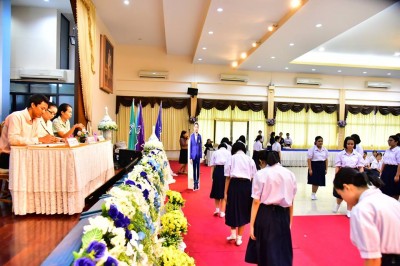 วันพฤหัสบดีที่ 16 พฤศจิกายน 2560 ดร.นิติกรณ์ ฉันท์วงศ์ชนะ ผู้อำนวยการโรงเรียนสงวนหญิง มอบใบประกาศเกียรติคุณบัตรให้กับ นายมลฑล ใบลี นักเรียนชั้นมัธยมศึกษาปีที่ 4/2 เนื่องในโอกาสได้รับการคัดเลือกให้เข้าร่วม พิธีบรรพชาอุปสมบทหมู่ถวายเป็นพระราชกุศลแด่ในหลวง รัชกาลที่ 9