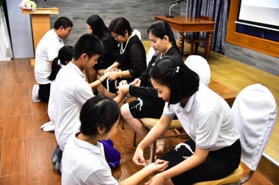 วันที่ 25 ตุลาคม 2560 บุคลากรโรงเรียนสงวนหญิง และจิตอาสาจากหน่วยงานต่าง ๆ อีกหนึ่งวันกับการเตรียมความพร้อม คุณครูบางท่านมีเวรน้ำของโรงเรียนกรรณสูตศึกษาลัยด้วย เตรียมความพร้อมทั้งสองโรงเรียนนำน้ำแช่ใส่ถังเรียบร้อยค่ะ...ส่วนบริการห้องสุขาซึ่งเป็นเรื่องที่จิตอาสาให้ความสำคัญ พับใบเตยเป็นดอกไม้อย่างปราณีต เตรียมมะกรูด อ่างลอยดอกไม้ รองเท้าฟองน้ำ ฯลฯ เพื่อให้สถานที่ที่รับผิดชอบสะอาดและสวยงามที่สุด...ห้องสุขาอาคารสมเด็จพระนเรศวร ชั้นบน ขอบพระคุณ พี่ป้า น้า อา จิตอาสาทุกคน...พวกท่านสุดยอดมากค่ะ