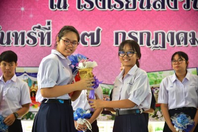 วันที่ 18 กรกฎาคม 2560 พิธีมอบของขัวญ และช่อดอกไม้แก่นักเรียนสงวนหญิง ที่จะเดินทางไปต่างประเทศในโครงการนักเรียนแลกเปลี่ยน oeg รุ่นที่ 23...2517/2518