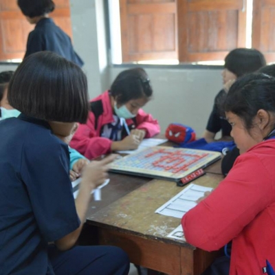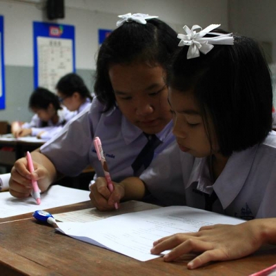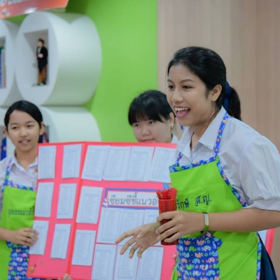 23 24 ม.ค. 58 โครงการจัดการเรียนการสอนตามหลักสูตร กระทรวงศึกษาธิการเป็นภาษาอังกฤษ (English Program) นำนักเรียนเข้าร่วมกิจกรรม จำนวน 196 คน ครูผู้ควบคุม จำนวน 24 คน โดยมีคุณครูสุพรรณชาติ แปลงเงิน เป็นหัวหน้าครูผู้ควบคุม เข้าค่ายวิถีไท ณ คำแสด ริเวอร์แคว รีสอร์ท อำเภอลาดหญ้า จังหวัดกาญจนบุรี