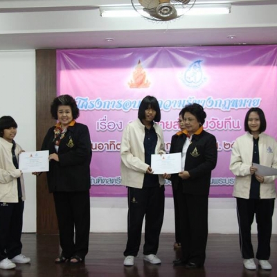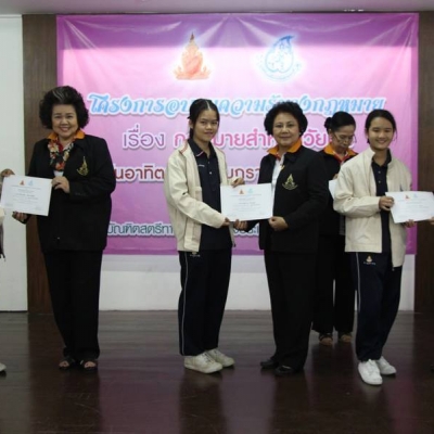 25 มกราคม 2558 นักเรียนแกนนำจิตอาสาครอบครัวพอเพียง ชั้นมัธยมศึกษาปีที่ 4 โรงเรียนสงวนหญิง จำนวน 30 คน เข้าร่วมโครงการอบรมความรู้ทางกฎหมาย เรื่อง กฎหมายวัยทีน จัดโดย สมาคมบัณฑิตสตรีทางกฎหมาย แห่งประเทศไทย ร่วมกับมูลนิธิครอบครัวพอเพียง ณ ห้องประชุมสุภัทรา สำนักงานสมาคมบัณฑิตสตรี ทางกฎหมายแห่งประเทศไทย
