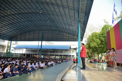 8 กุมภาพันธ์ 2558 นักเรียนเข้ารับการอบรมโครงการ เยาวชนวัยใส ห่างไกลยาเสพติด คิดรู้เท่าทันสื่อ